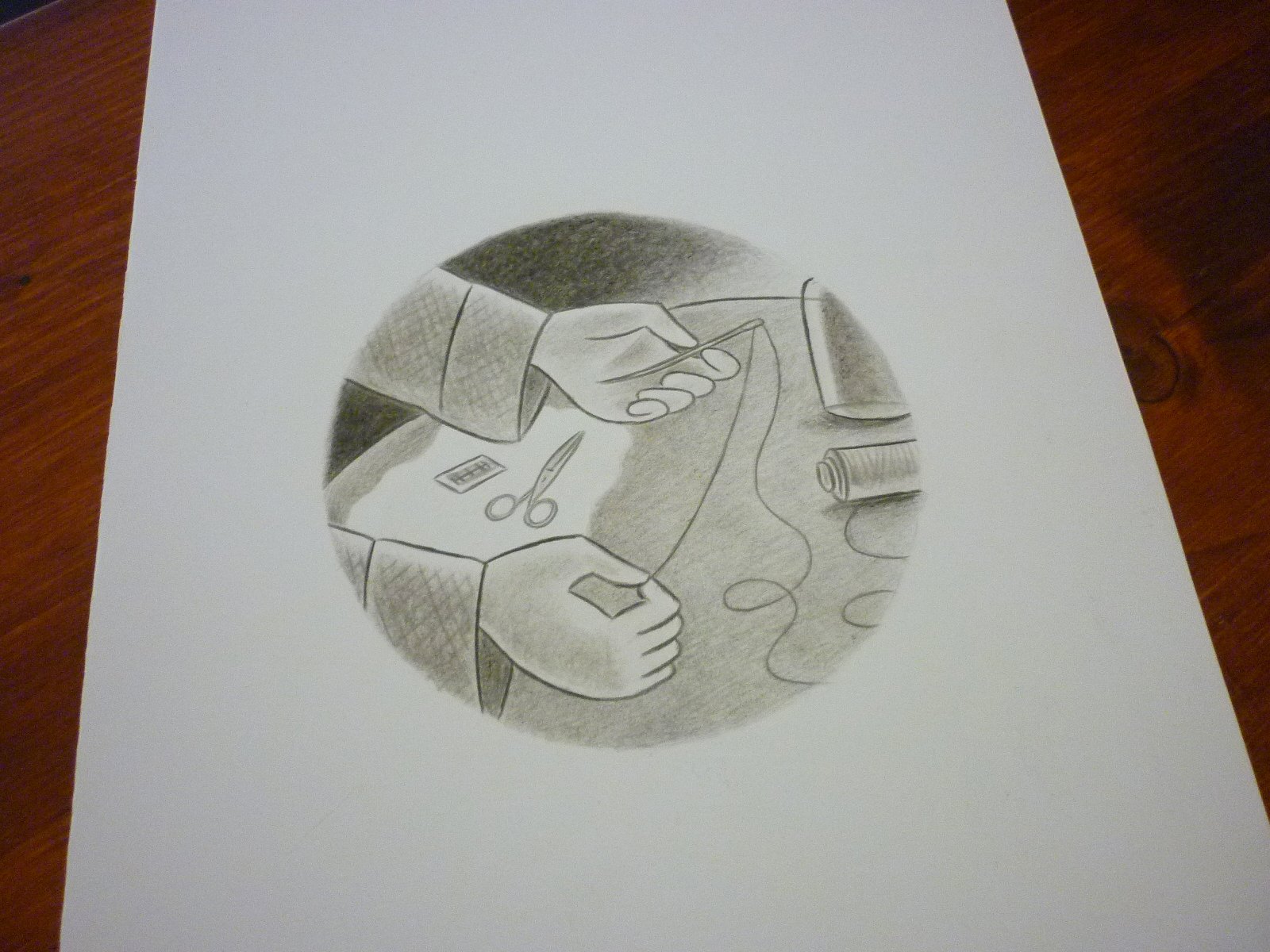Cuchilla de afeitar, tijeras, algodón, aguja e hilo. Galván reúne algunos objetos para atacar a su mujer mientras duerme en “Él” (1953)