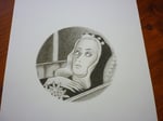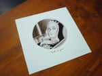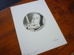 Una reproducción firmada del dibujo en papel mate 167 gm tamaño 20 x 20 cm. y una tarjetita firmada de "Ojos de Buñuel" tamaño 7 x 10 cm.