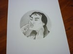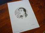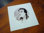 Una reproducción firmada del dibujo en papel mate 167 gm tamaño 20 x 20 cm. y una tarjetita firmada de "Ojos de Buñuel" tamaño 7 x 10 cm.