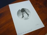 Una reproducción firmada del dibujo en papel mate 167 gm tamaño 20 x 20 cm. y una tarjetita firmada de "Ojos de Buñuel" tamaño 7 x 10 cm.