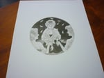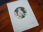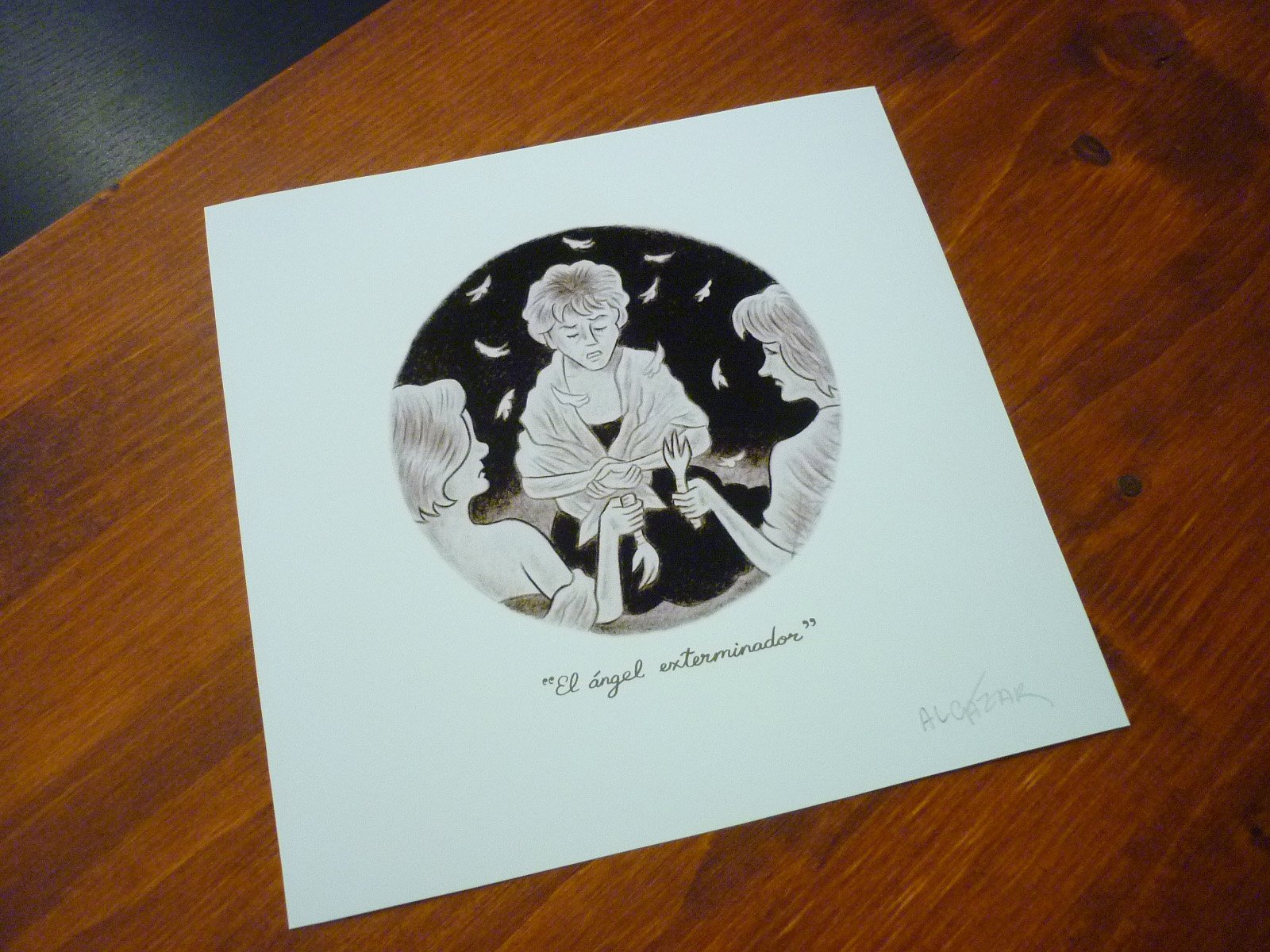 Una reproducción firmada del dibujo en papel mate 167 gm tamaño 20 x 20 cm. y una tarjetita firmada de "Ojos de Buñuel" tamaño 7 x 10 cm.
