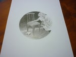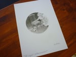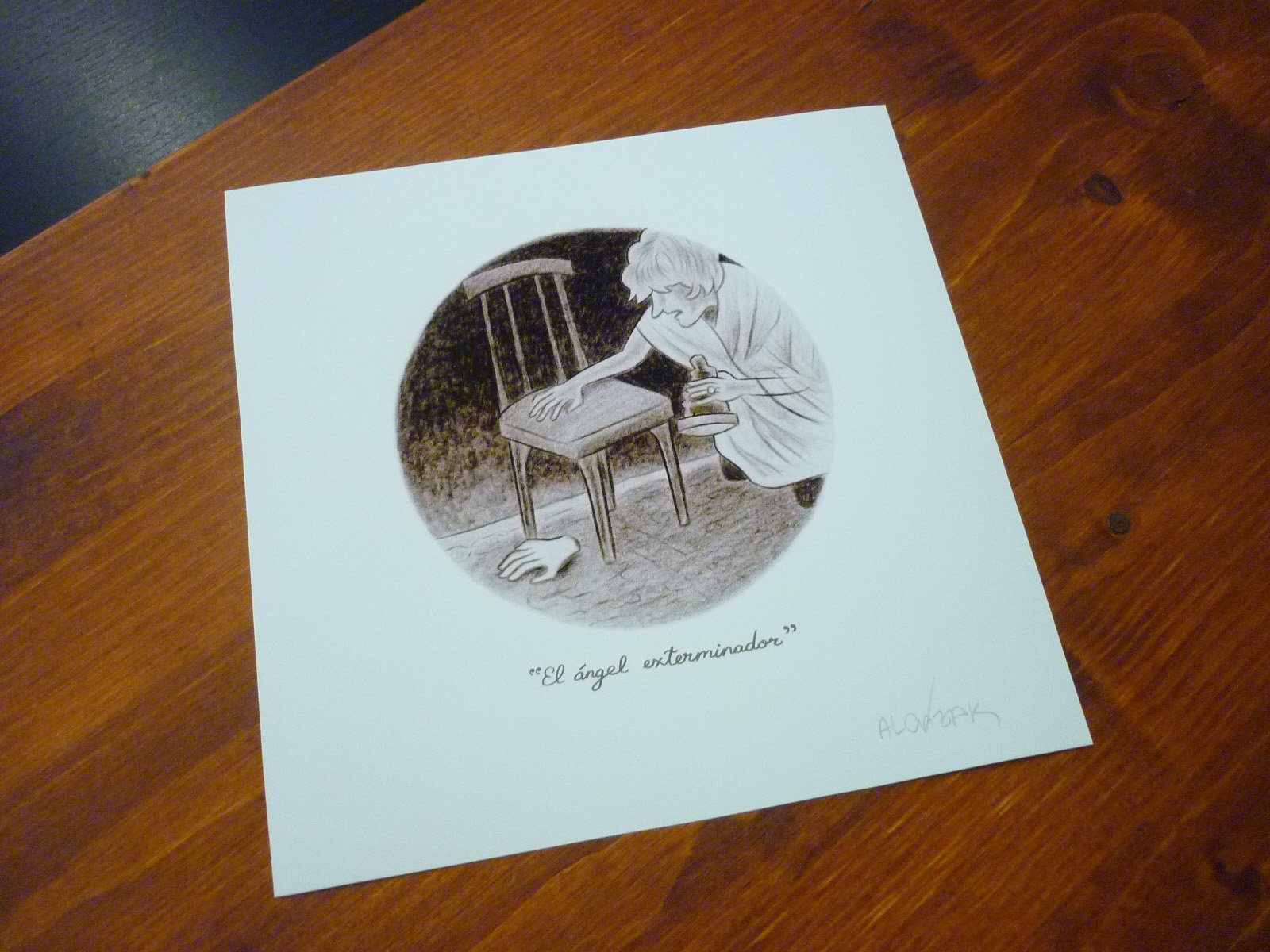 Una reproducción firmada del dibujo en papel mate 167 gm tamaño 20 x 20 cm. y una tarjetita firmada de "Ojos de Buñuel" tamaño 7 x 10 cm.