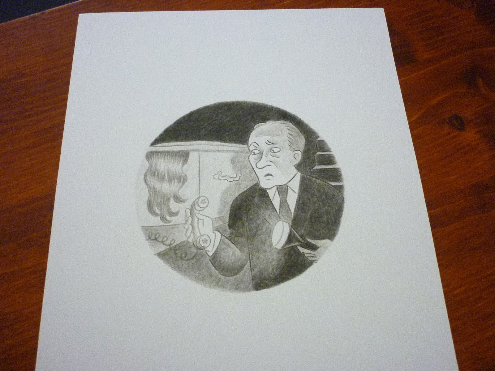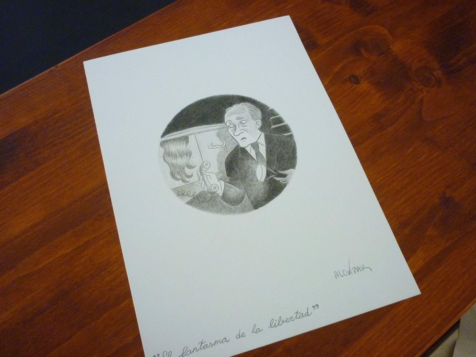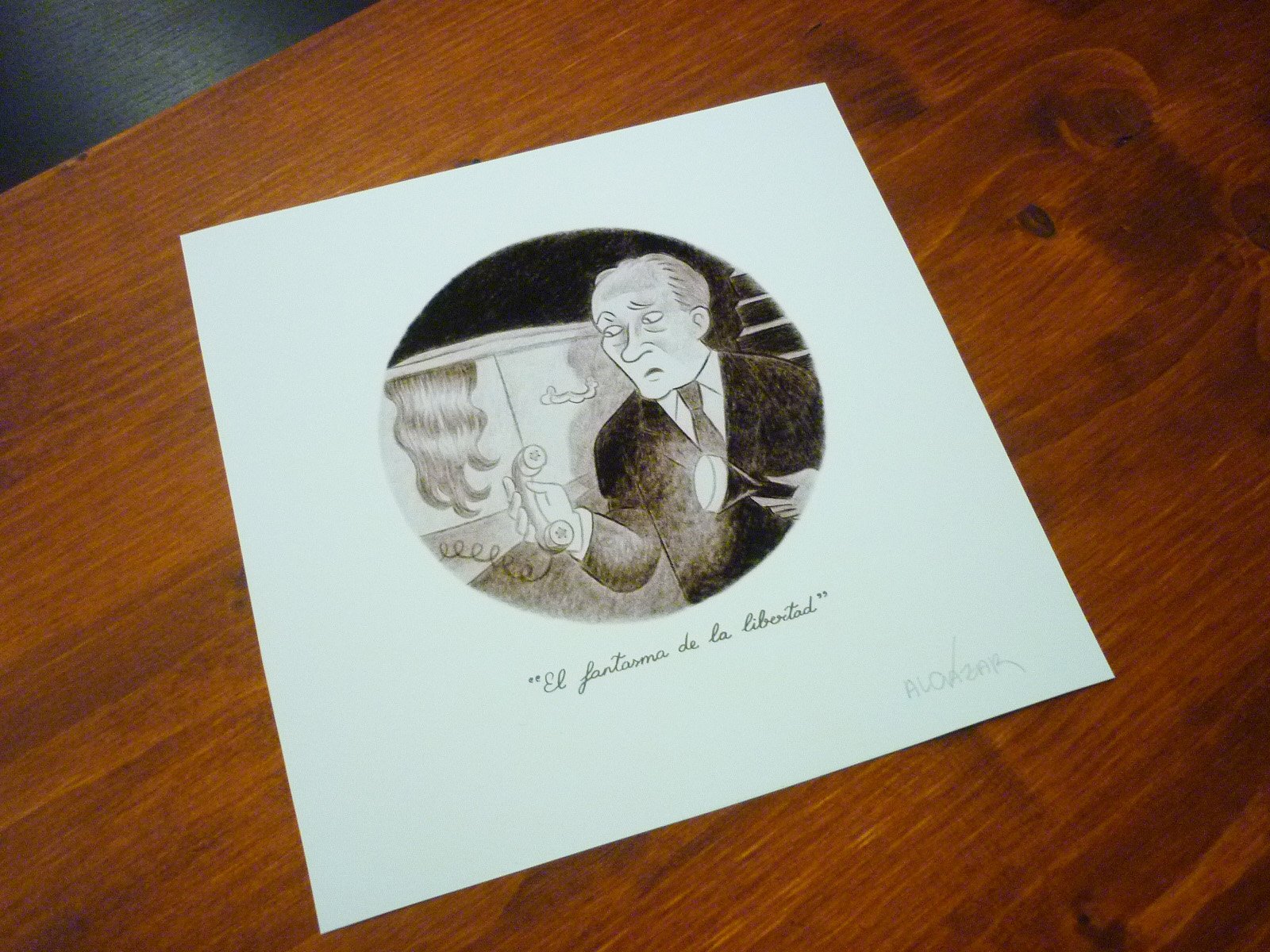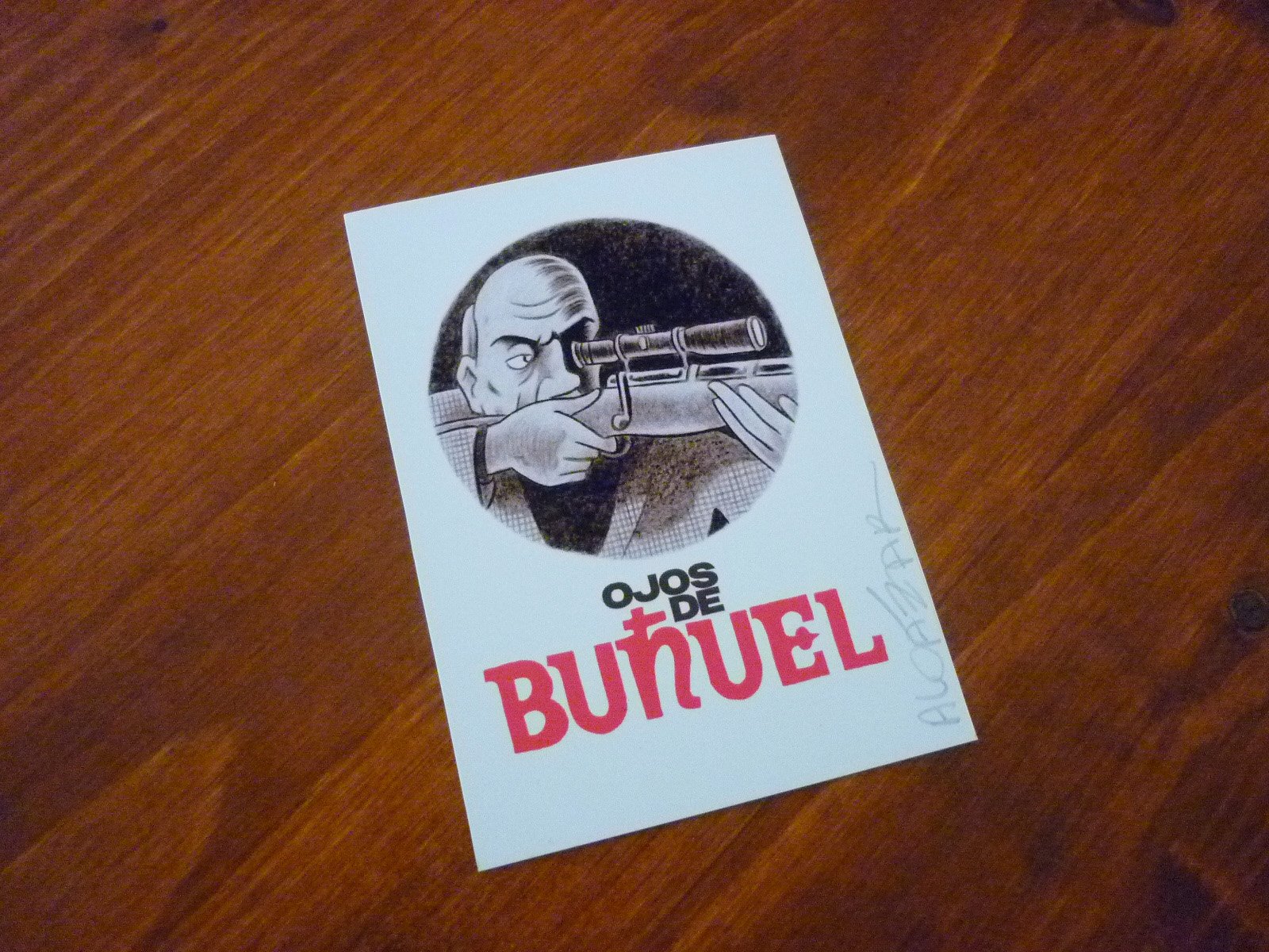 Una reproducción firmada del dibujo en papel mate 167 gm tamaño 20 x 20 cm. y una tarjetita firmada de "Ojos de Buñuel" tamaño 7 x 10 cm.