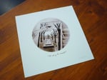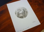 Una reproducción firmada del dibujo en papel mate 167 gm tamaño 20 x 20 cm. y una tarjetita firmada de "Ojos de Buñuel" tamaño 7 x 10 cm.