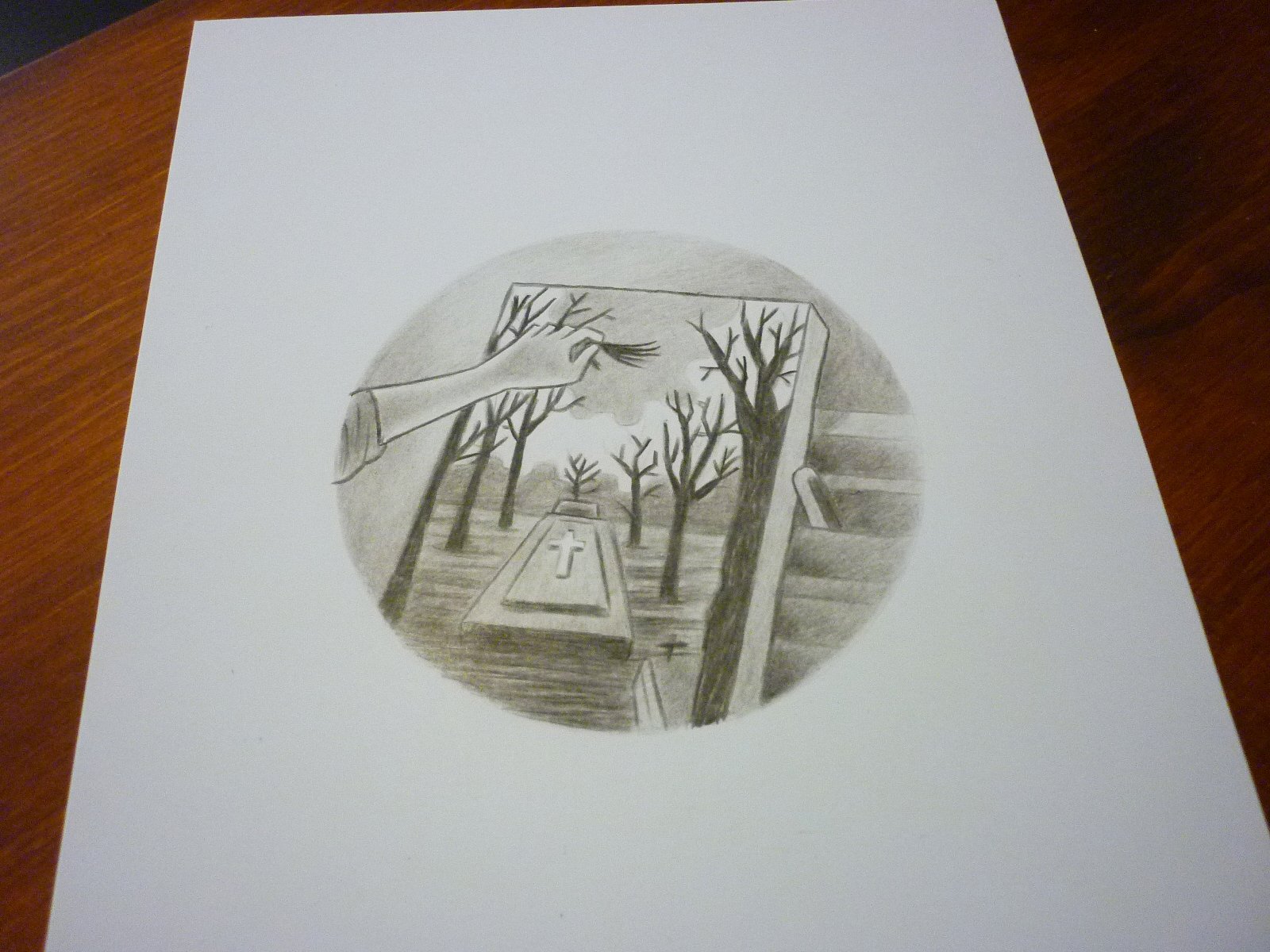 Cuadro de una tumba con un mechón de pelo de su inquilino en “El río y la muerte” (1954)