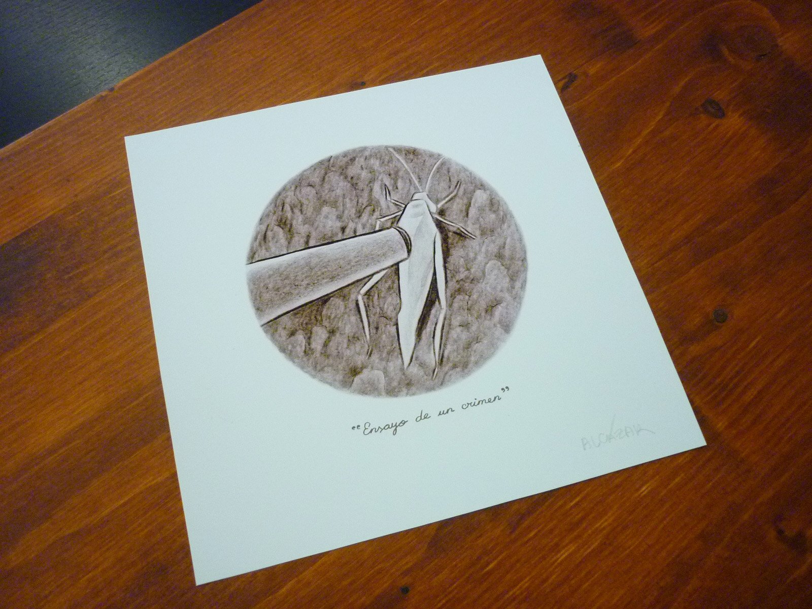 Una reproducción firmada del dibujo en papel mate 167 gm tamaño 20 x 20 cm. y una tarjetita firmada de "Ojos de Buñuel" tamaño 7 x 10 cm.