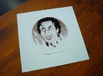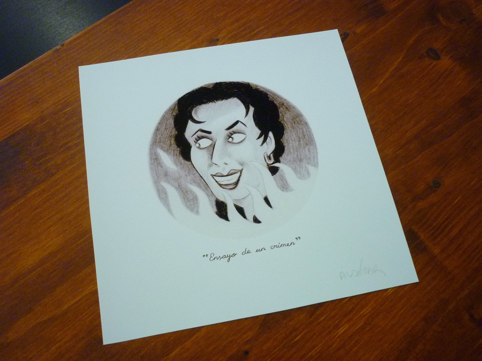 Una reproducción firmada del dibujo en papel mate 167 gm tamaño 20 x 20 cm. y una tarjetita firmada de "Ojos de Buñuel" tamaño 7 x 10 cm.