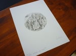 Una reproducción firmada del dibujo en papel mate 167 gm tamaño 20 x 20 cm. y una tarjetita firmada de "Ojos de Buñuel" tamaño 7 x 10 cm.