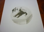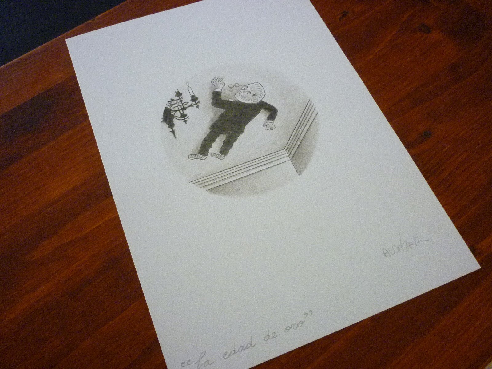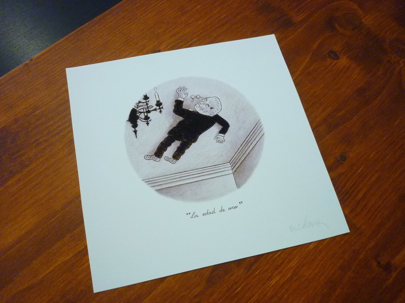 Una reproducción firmada del dibujo en papel mate 167 gm tamaño 20 x 20 cm. y una tarjetita firmada de "Ojos de Buñuel" tamaño 7 x 10 cm.