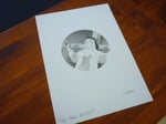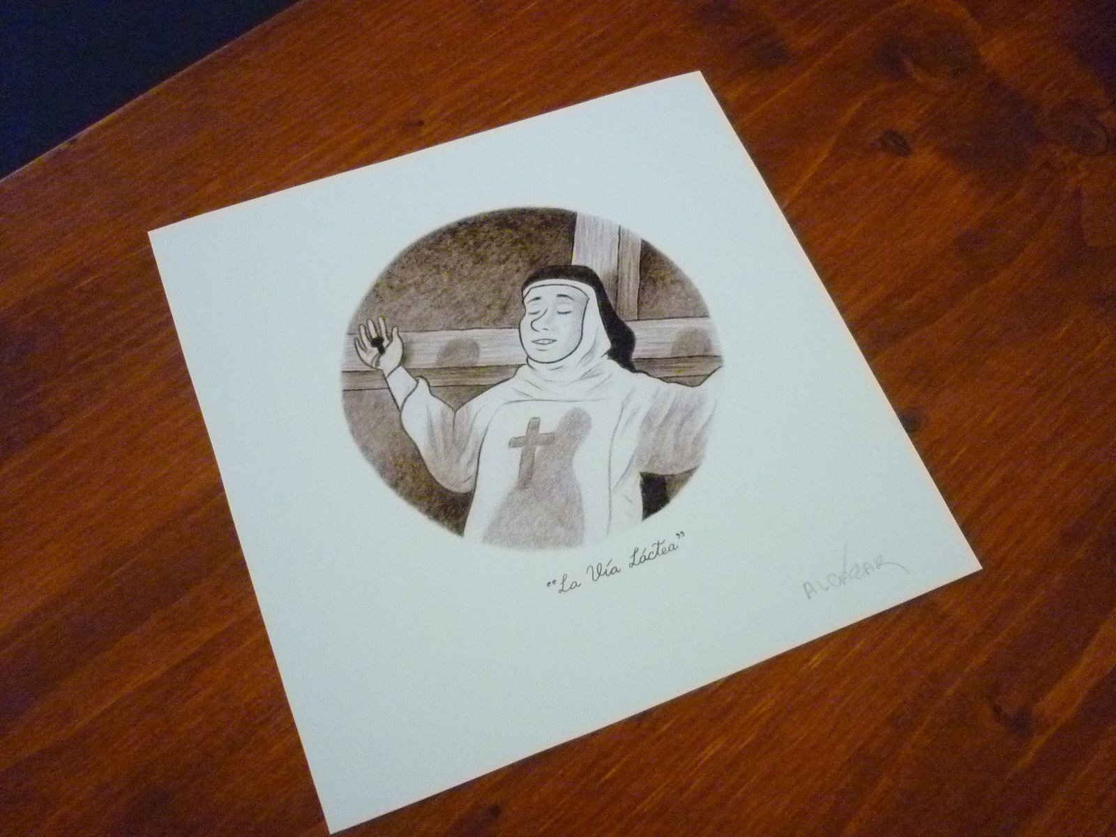 Una reproducción firmada del dibujo en papel mate 167 gm tamaño 20 x 20 cm. y una tarjetita firmada de "Ojos de Buñuel" tamaño 7 x 10 cm.