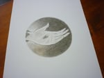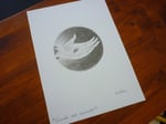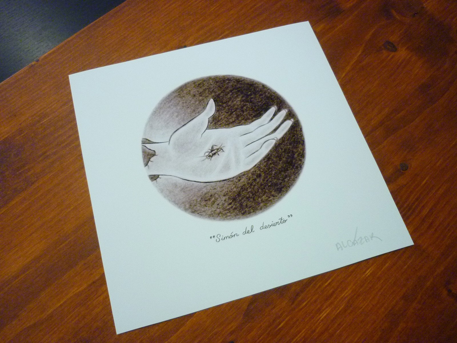Una reproducción firmada del dibujo en papel mate 167 gm tamaño 20 x 20 cm. y una tarjetita firmada de "Ojos de Buñuel" tamaño 7 x 10 cm.