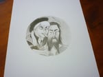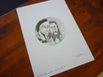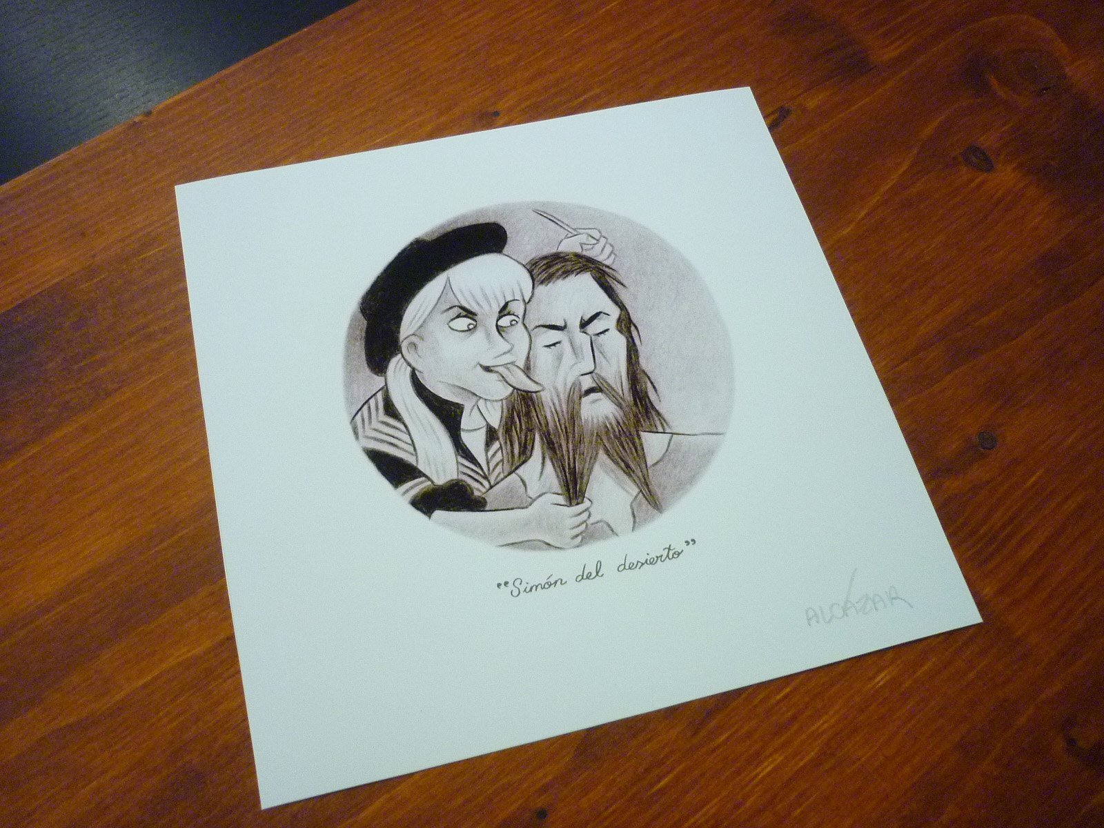 Una reproducción firmada del dibujo en papel mate 167 gm tamaño 20 x 20 cm. y una tarjetita firmada de "Ojos de Buñuel" tamaño 7 x 10 cm.