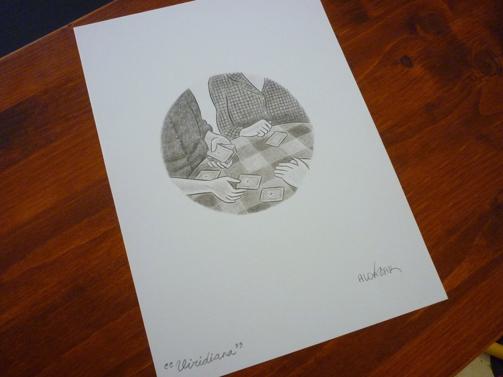 Una reproducción firmada del dibujo en papel mate 167 gm tamaño 20 x 20 cm. y una tarjetita firmada de "Ojos de Buñuel" tamaño 7 x 10 cm.